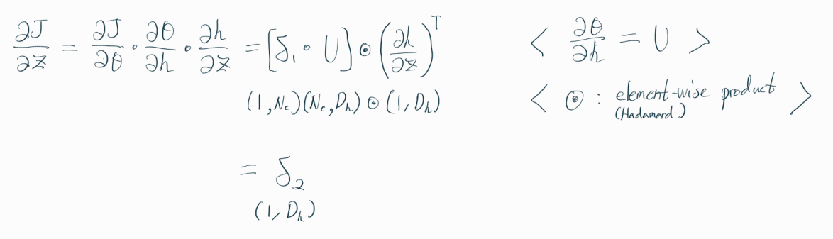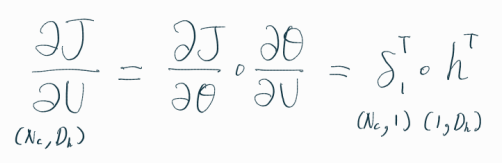 손실 함수(CE)를 U에 해당하는 가중치로 편미분하면, 위와 같이 표현할 수 있다.
