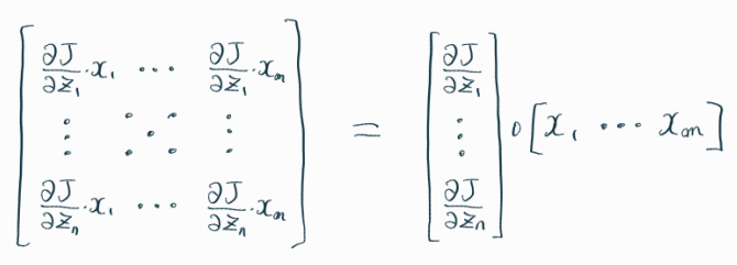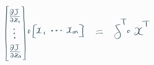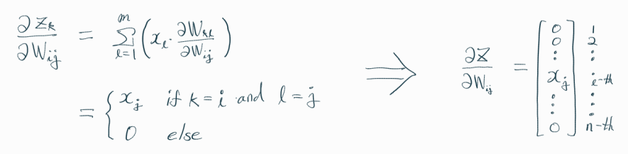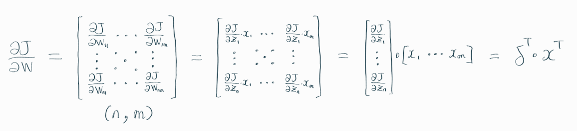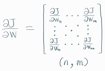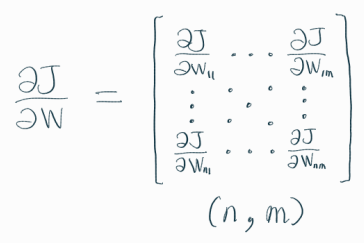 다음으로 손실함수 J를 가중치 행렬 W에 대해 미분해보자.