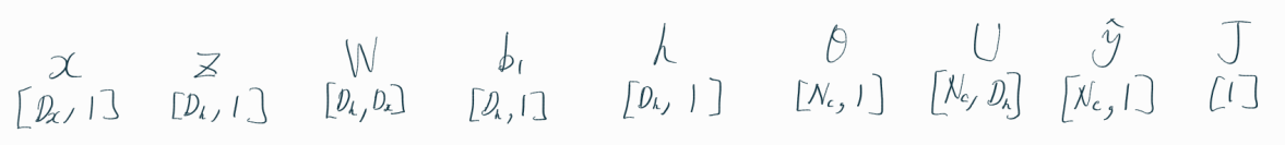 위 그림은 각 변수들의 차원(dimensions)을 나타낸다.