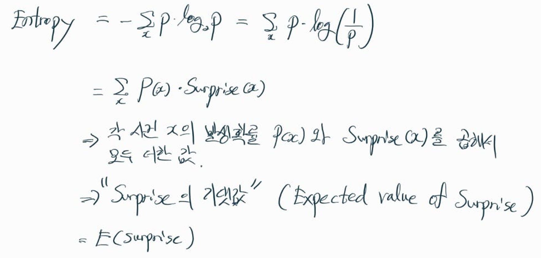 즉, Surprise = 무한대 (매우 큼) 이다.