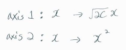 축 2 (axis2) 에서는 x에 제곱을 한다고 해석할 수 있다.